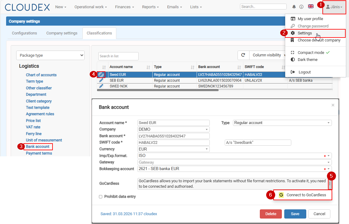 To enable automatic bank statement downloads (up to 3 times per day), you need to connect your bank account with GoCardless.