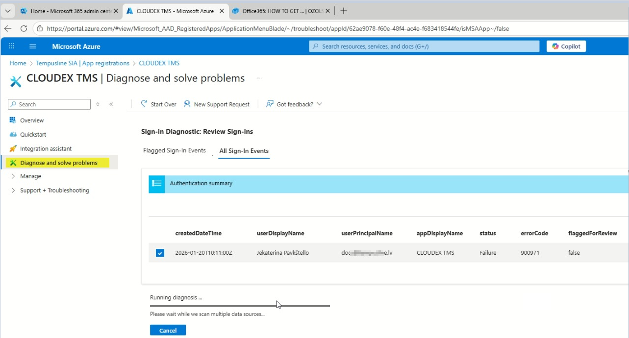 In case you have any problems sending out emails from CLOUDEX TMS or Ozols you can run "Diagnose and solve problems" tool