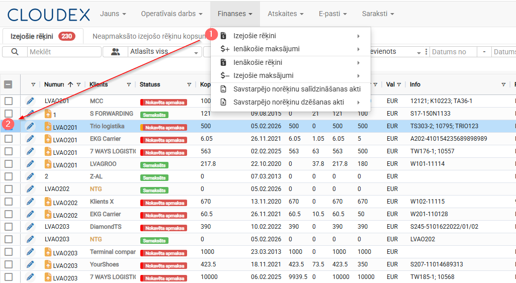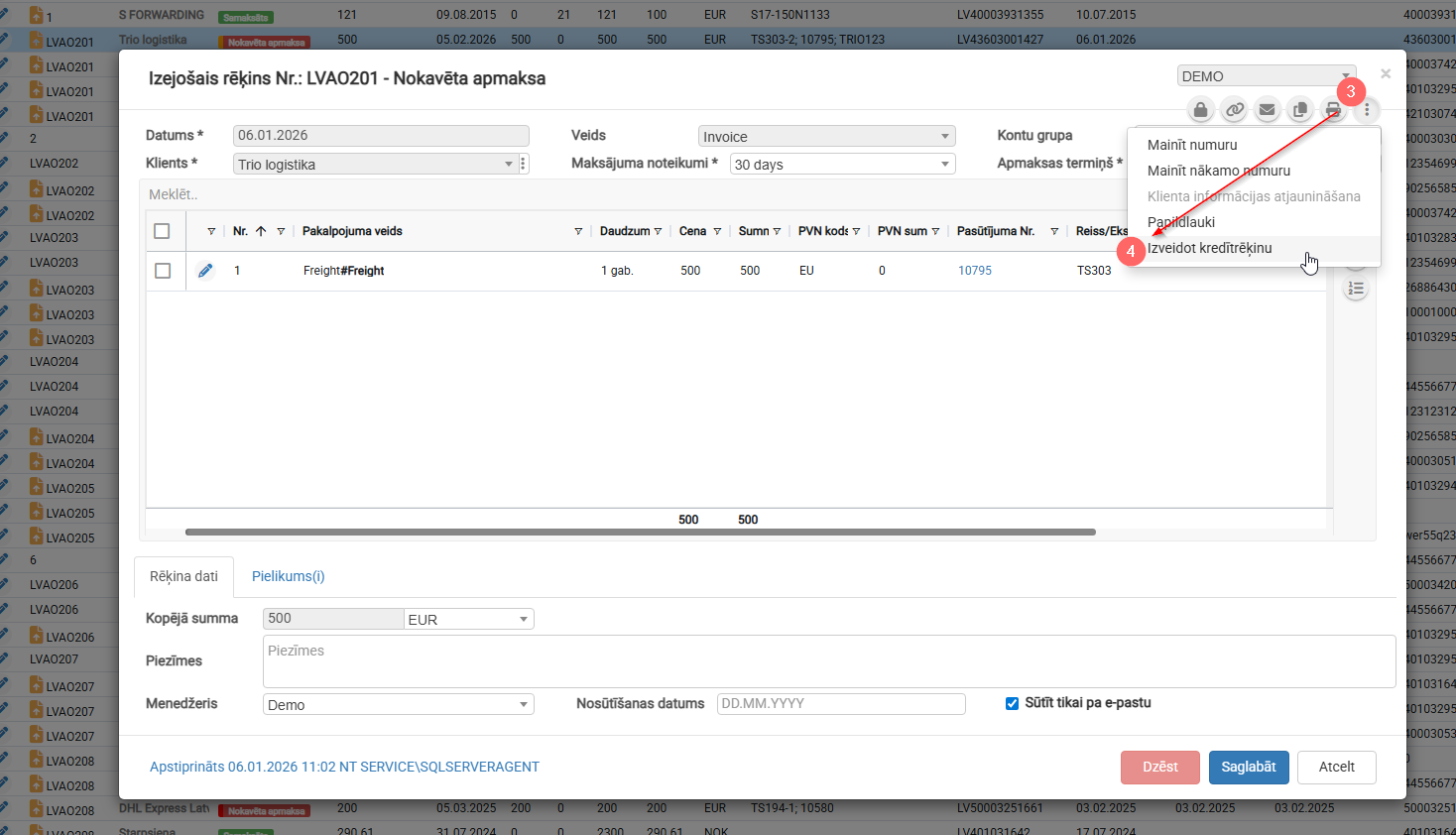 1. Kredītrēķina izveidošana izejošam rēķinam